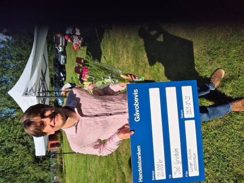 | Den 20/7 2025 genomfördes den fjärde upplagan av "Jazz på Gonäsheden". En kvintett unga yrkesmusiker, med värdparet Niklas Bergström piano och Linnea Jonsson trumpet i spetsen, bjöd på en fin konsert inför en publik på ca 100 personer som tagit plats i skuggan i det varma vädret. Efter paus fick jazzklubben tillfälle att presentera en av årets mottagare till Lennart Wikströms jazzstipendium, trumpetaren Joel Grenholm. Efter hyllning med check och blommor och uppläsning av juryns motivering fick Joel tillfälle att visa sina färdigheter i en låt tillsammans med komptrion, som belönades med starka applåder av publiken. |
